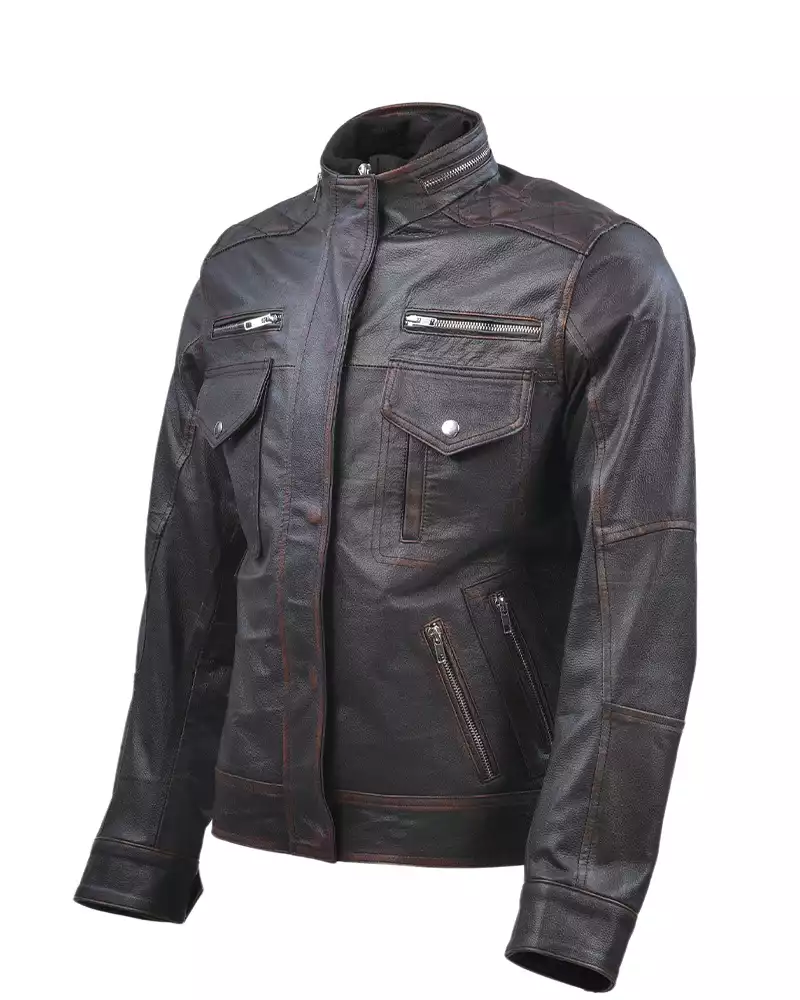 Cafe Racer Distressed Brown Leather Jacket