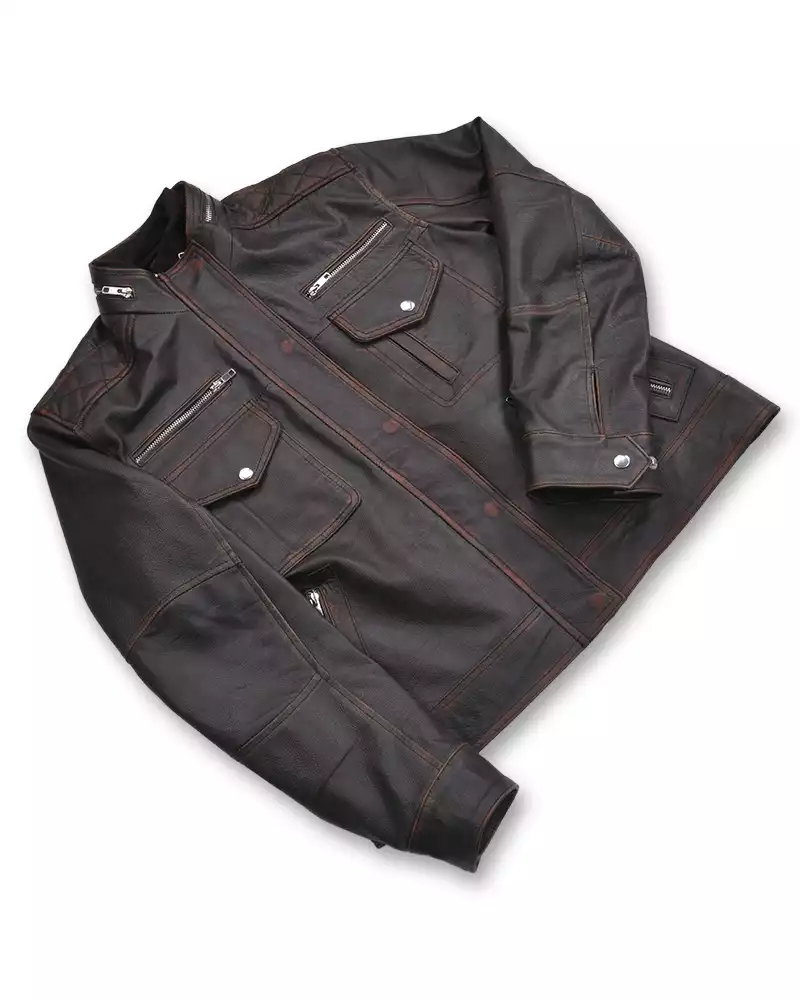 SKU: cafe-racer-distressed-brown-leather-jacket-parent Category:
