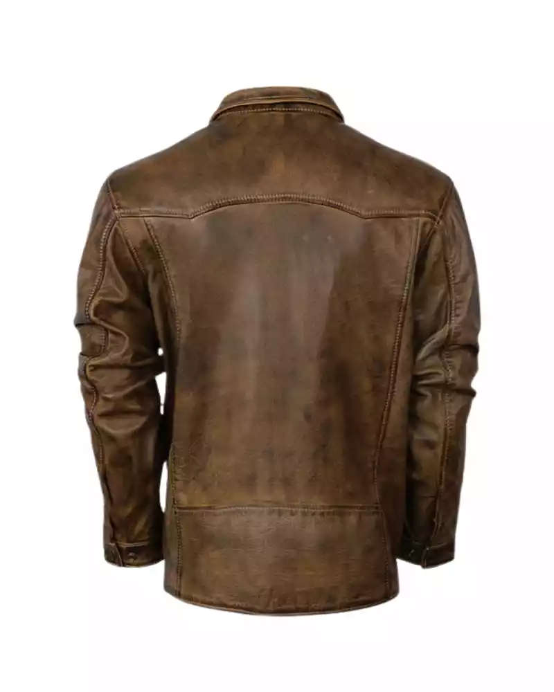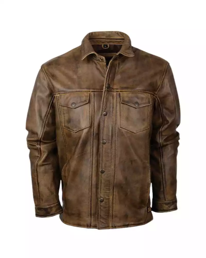 The Genuine Leather is a jacket shop that differs from many other shops in providing different kinds of classic jackets at relatively lower prices. We have one core belief in ensuring that whatever outerwear is prepared is always up to quality so as to make our customers satisfied. You can discover a range of stylish jackets, offered in sophisticated styles. We typically specialize in curating the finest leather jackets. Let’s check out this fact Men Distressed Brown Leather Biker Shirt Jacket