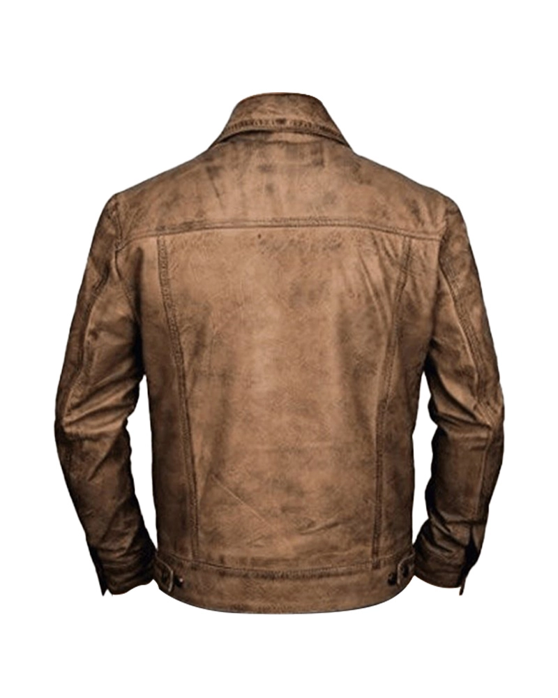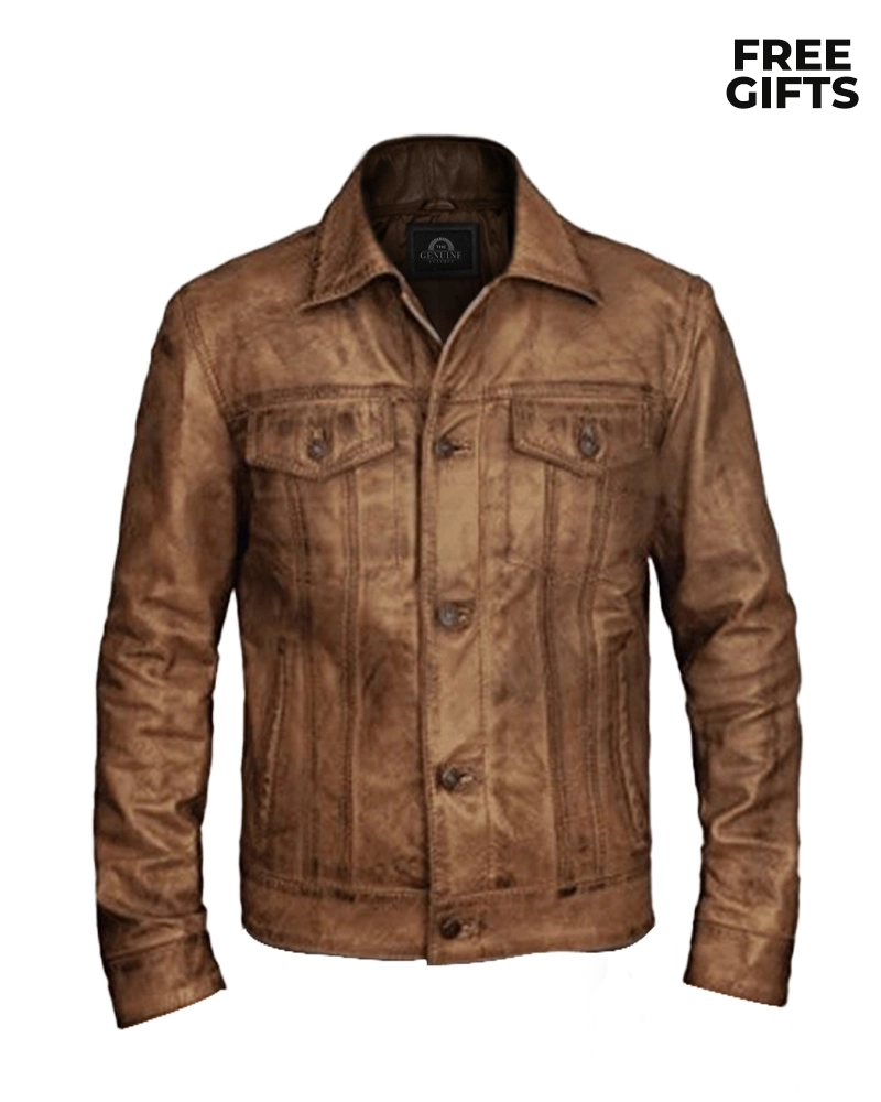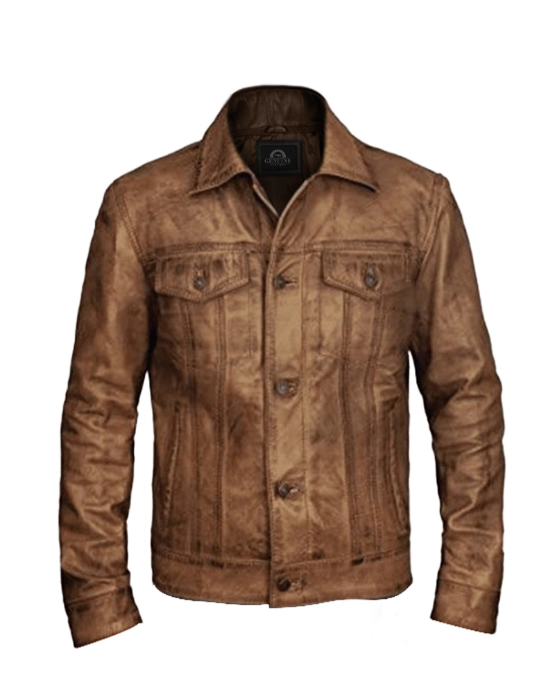 Men Distressed Leather Trucker Vintage Jacket