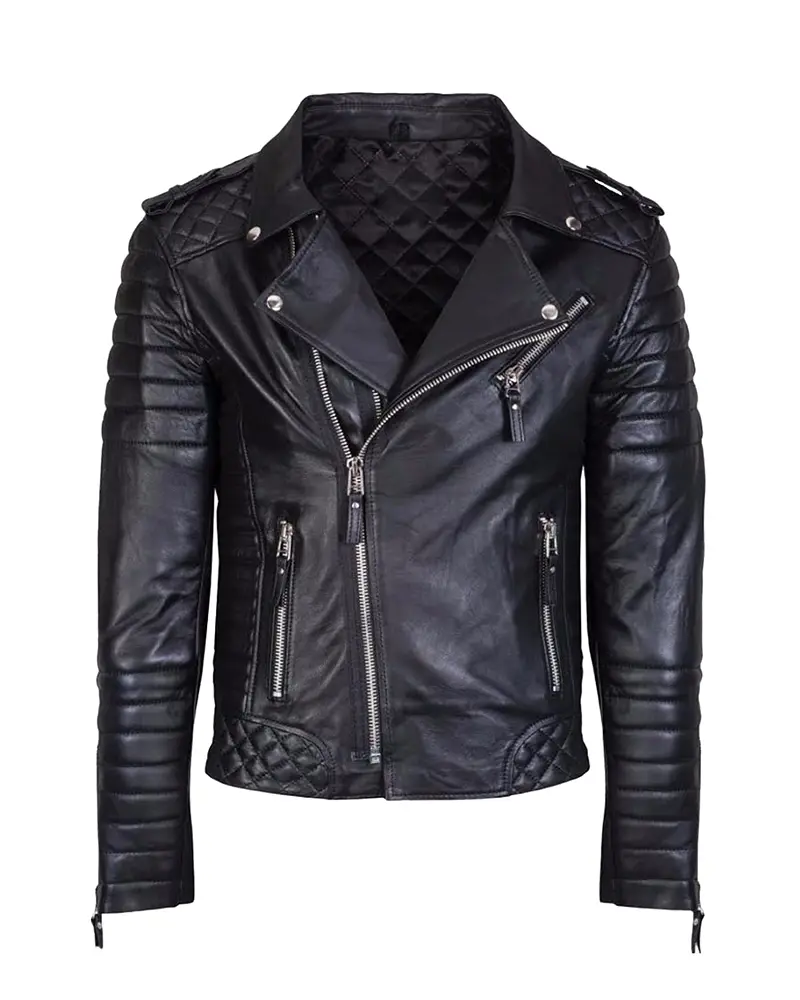 Mens Black Padded Motorcycle Leather Jacket