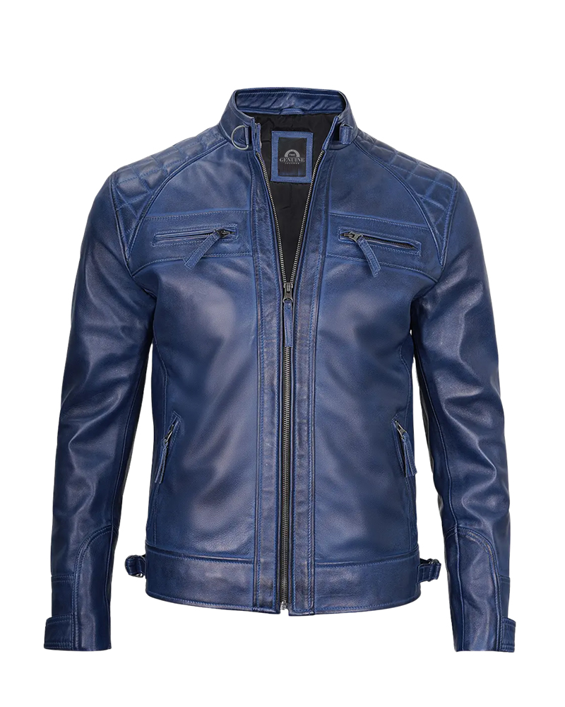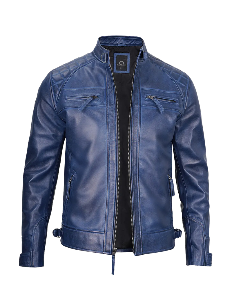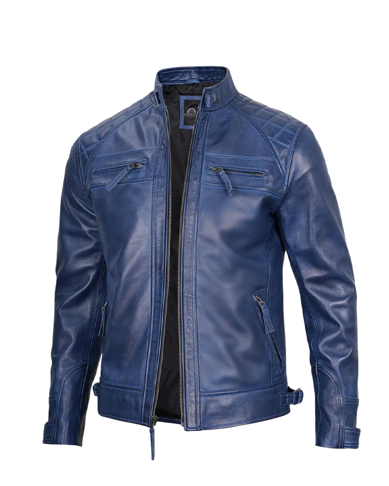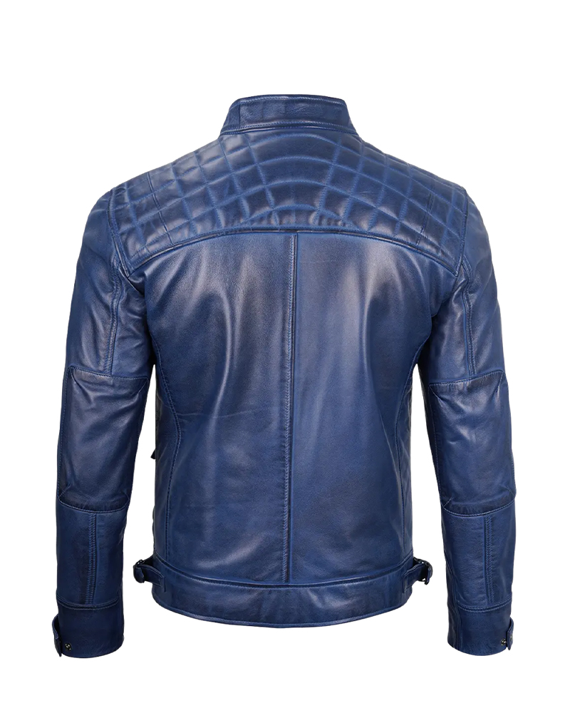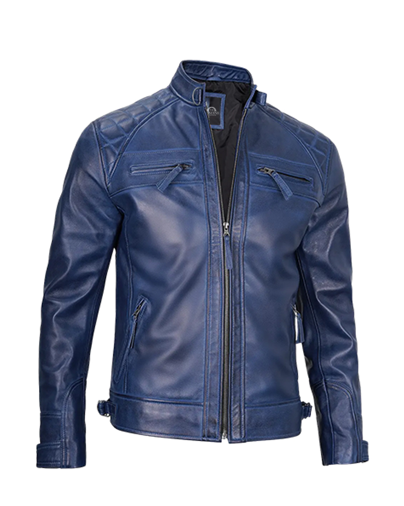 The Mens Blue Waxed Cafe Racer Leather Jacket is like wearing a huge piece of the ocean and sky. This cafe racer leather jacket is not your regular black or brown jacket. It is a beautiful, rich blue shade that ensures you are noticed for all the right reasons. The waxed finish on this leather gives it a beautiful shine, which glimmers right where it should, in the sunlight over water. But wait-whoever made this one considered something far more extraordinary: the feel-soft enough to let you move, yet tough enough to take adventure. The cafe racer leather jacket style means it is snug to the body-not tight-fit to look sharp, either on a bike or on a casual street stroll. The zippers glide flawlessly, collar stays how you want them, and pockets fit comfortably for your cellphone and keys. The very way the jacket is worn develops its character, with waxed finishes forming quite an extraordinary pattern. This is a kind of jacket you would want to be ready to grab or stop conversations about everywhere you go!
