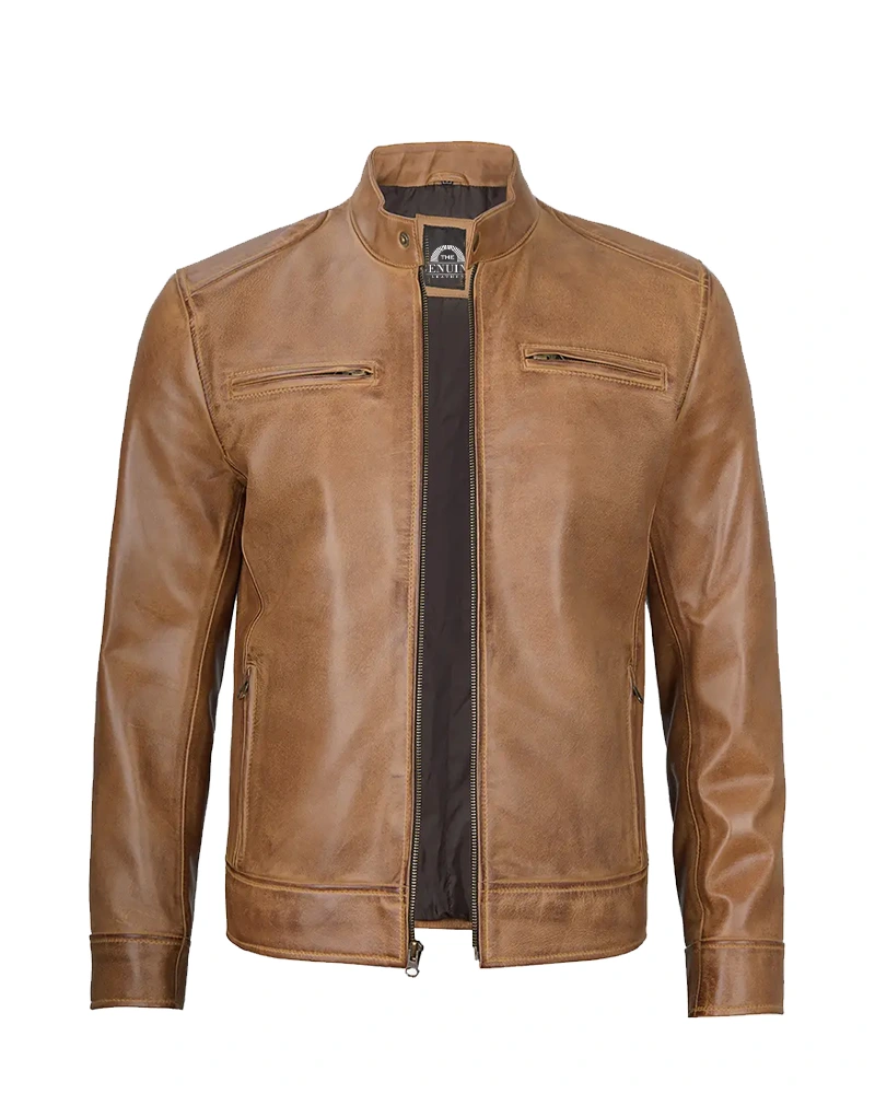 Men’s Camel Brown Cafe Racer Leather Jacket