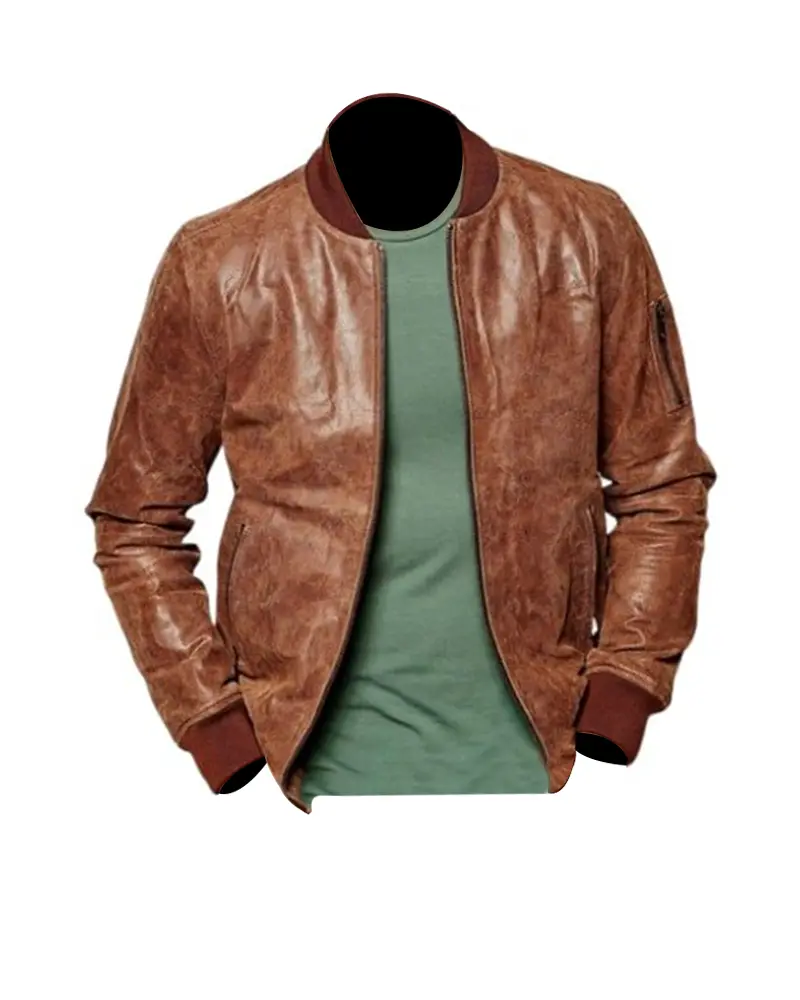 SKU: mens-distressed-brown-bomber-leather-jacket-parent Category: