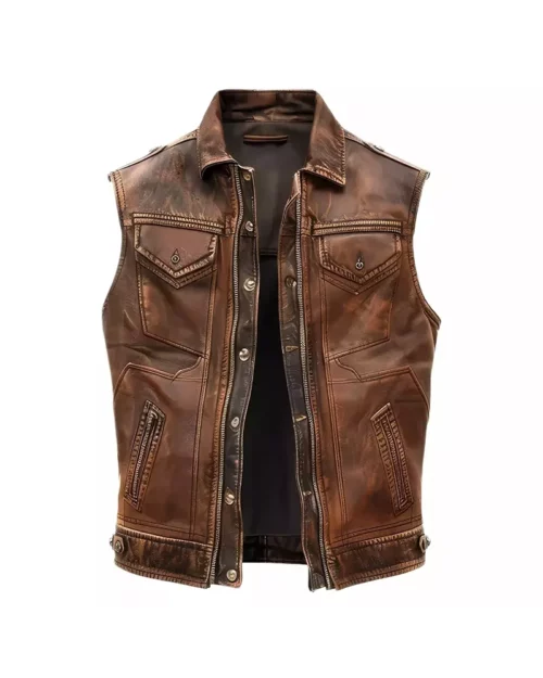 Mens Distressed Brown Real Leather Vest