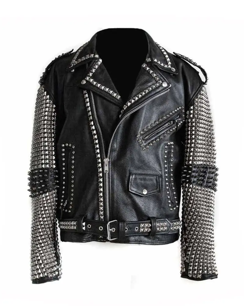 Mens Punk Studded Black Leather Jacket