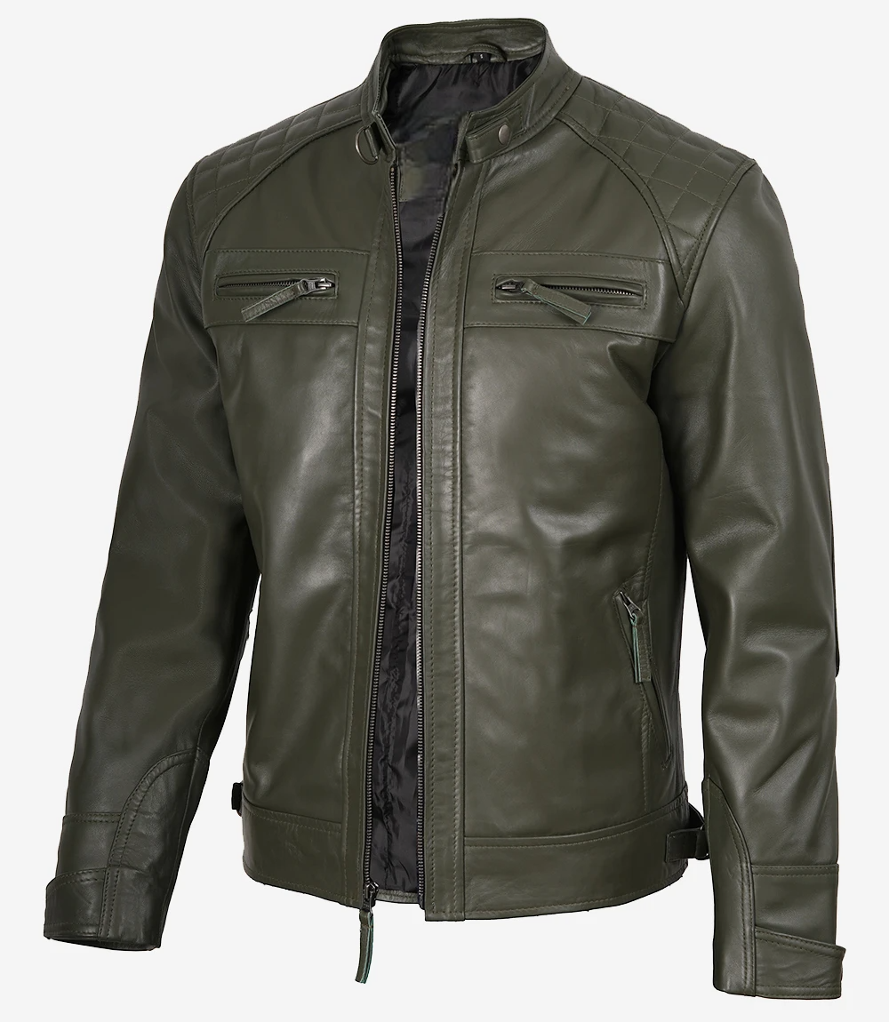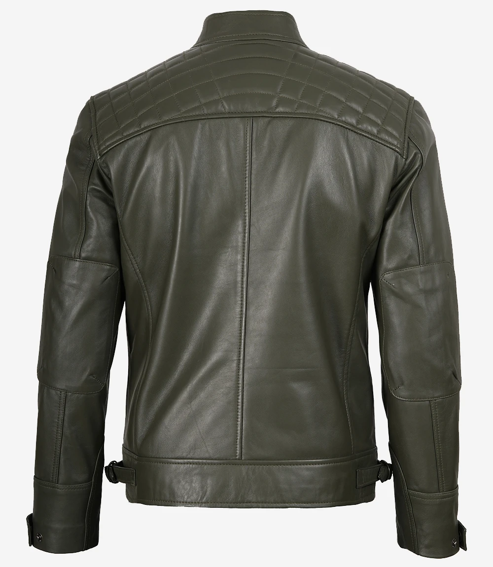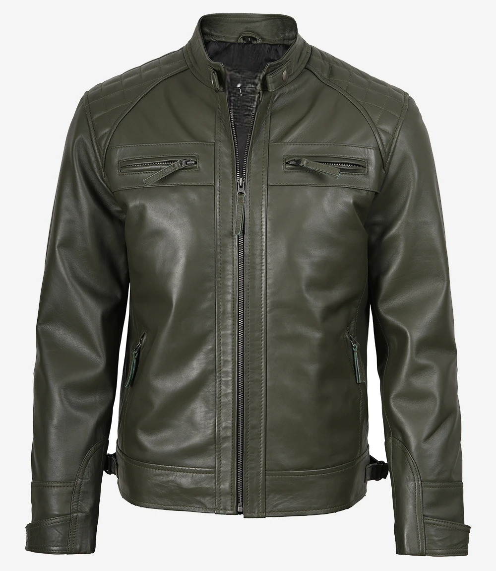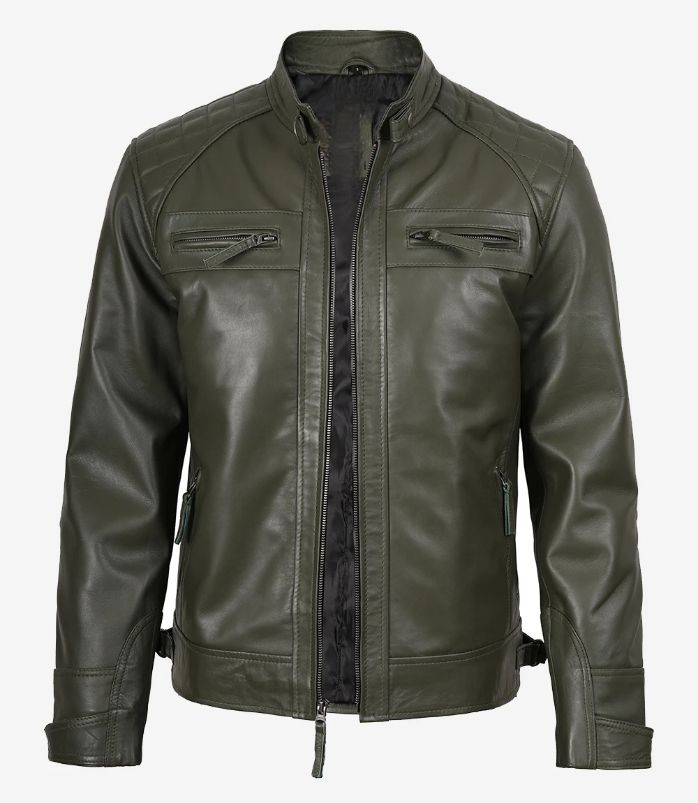 Mens Quilted Shoulder Biker Style Leather Jacket