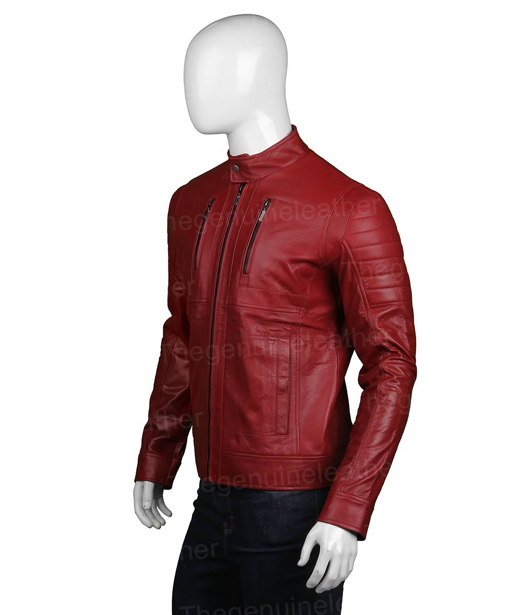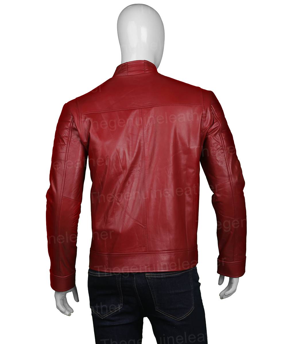 Mens Red Leather Biker Jacket