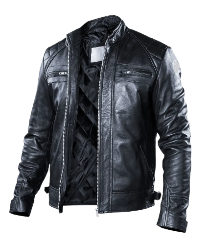Men’s Sam Black Cafe Racer Quilted Biker Leather Jacket