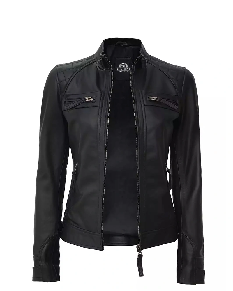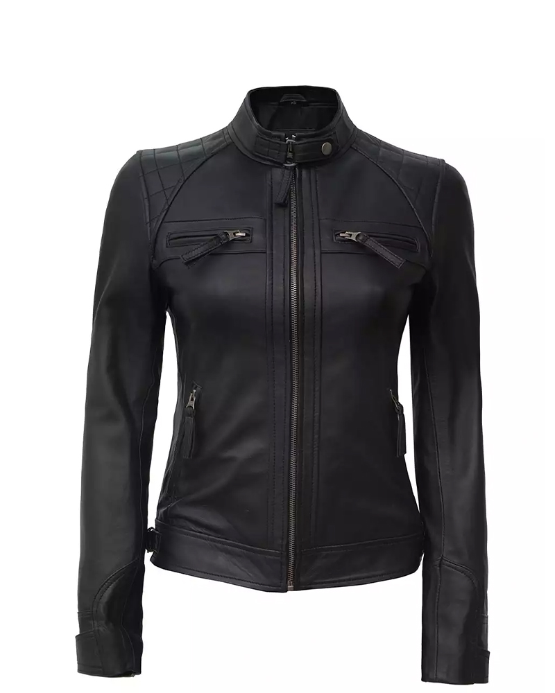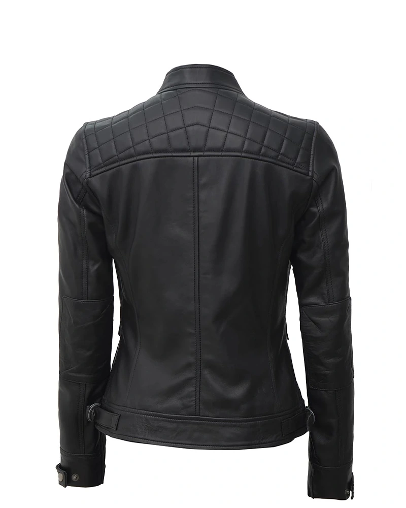 The Women Black Quilted Cafe Racer Leather Jacket is the epitome of motorcycle cool and daytime elegance. This sleek black leather jacket hugs your body just nicely at the right curves, and it forms diamond quilting, which adds just a touch of texture to stand out. The decorative silver zippers gleam like jewels against the black matte ground, while the cropped length would fall just perfectly on your waist. It has the standing collar, which gives you that classic biker look and yet, the soft lining keeps you cozy throughout the day-long affair. More than the rugged rebel image, this cafe racer leather jacket works wonders in changing the simplest outfits into breathtaking views. It’s lightweight too, which makes it appropriate for wearing through spring and fall, and the premium leather will soften with every wear.